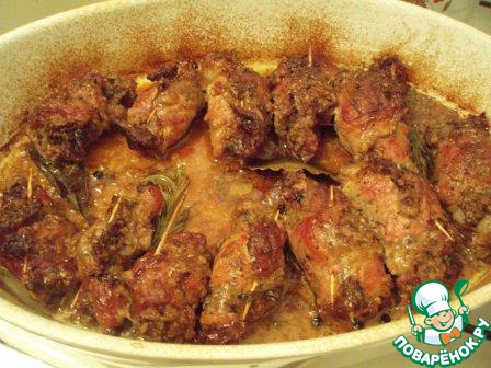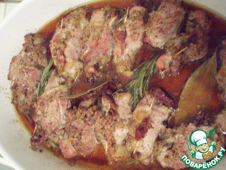 Затем залейте рулетики 2 ст. воды, положите лавровый лист, розмарин, посыпьте специями и тушите еще 40-45 мин. до готовности. Периодически нужно поливать рулетики образовавшимся бульоном.