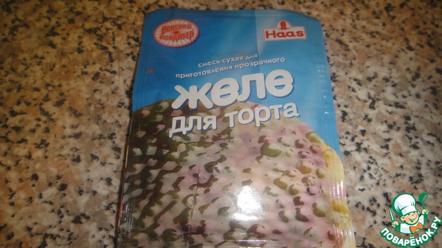 Желатина у меня не было, в закромах было найдено желе для торта. Я сухую смесь из пакета смешала с 50 гр сахара и добавила 150 гр. воды.