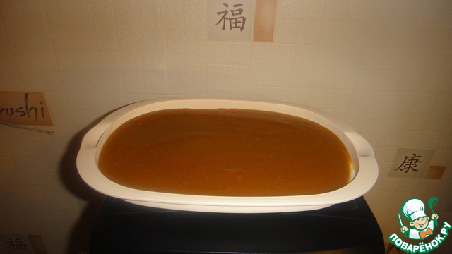 Все тщательно перемешать. Я положила наше повидло в форму, чтоб оно быстрее остыло. Так, как планировала приготовить рулет из дрожжевого теста.