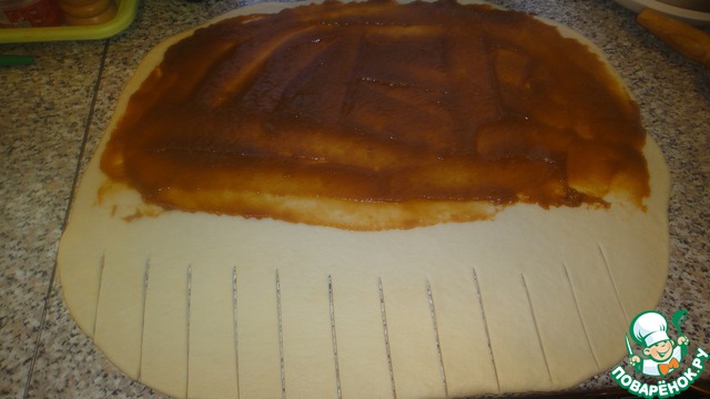 Дрожжевое тесто у каждого свое. У меня сегодня постное. Делала в хлебопечке : 1 ст. л дрожжей, 2 ст. л сахара, 200 мл. воды, 50 гр. растительного масла, 0,5 ч. л. соли, муки 500-600 гр.