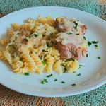 Вкусная свининка с соусом из вина и сливок с макаронами. За фото к рецепту спасибо Нелли nelliundco.