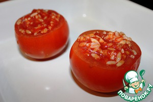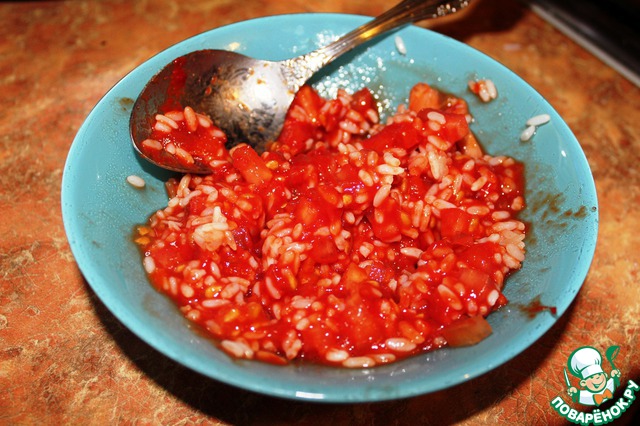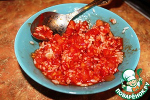 Мякоть помидоров измельчите, соедините с томатной пастой и рисом. Тщательно перемешать.