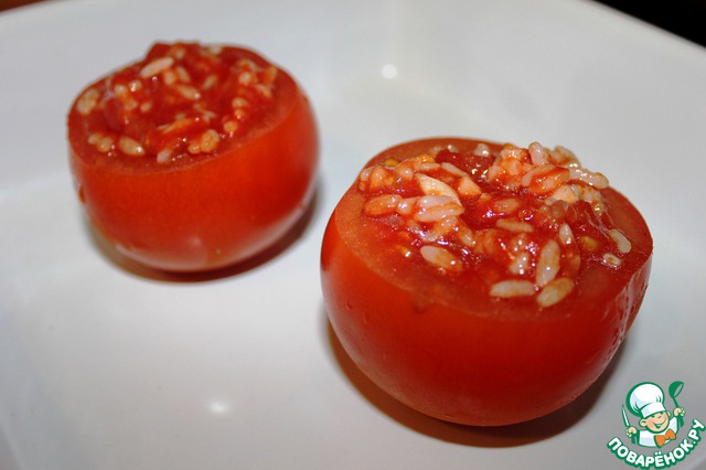 С помидоров срежьте верхушки, острой ложкой выньте мякоть.