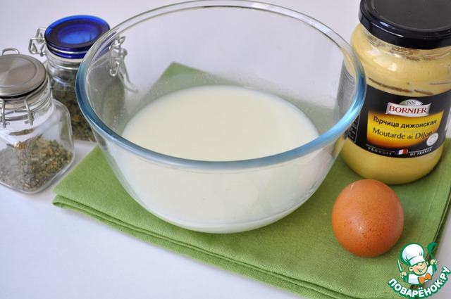 Рыбу и креветки вынуть, молоко процедить. Молоко остудить, добавить дижонскую горчицу, яйцо, розмарин и базилик, взбить погружным блендером.