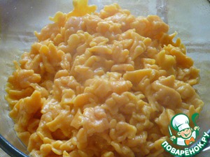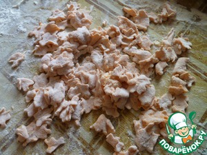 Затем руками начинаем как бы встряхивать наше тесто, чтобы оно рассыпалось на отдельные квадратики.