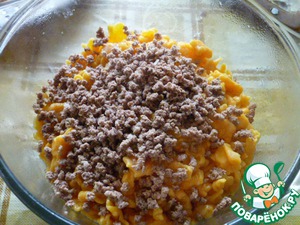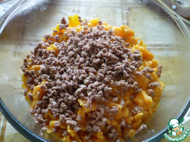 - Мясо (вареное или жаренное, перекрученное на мясорубку. Любое, можно с зажаркой.)