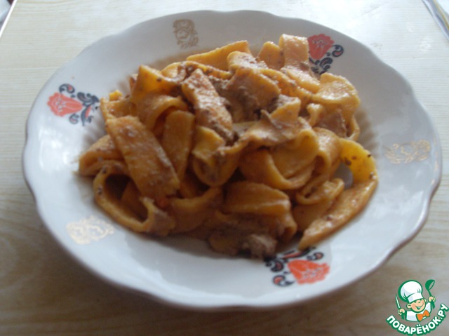 Секрет этой лапши в том, что в ее состав входит морковное пюре. Пока я делала, муж рядом ходил и говорил, что он такое есть не будет. Но, когда я сварила лапшу и насыпала ему маленькую порцию, то он не только все съел, но и пришел за добавкой.