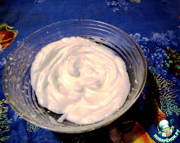 Отдельно взбиваем белки до образования мягких пиков. Белки лучше взбить сразу, пока они из холодильника и после взбивания миску поставить в холодное место.