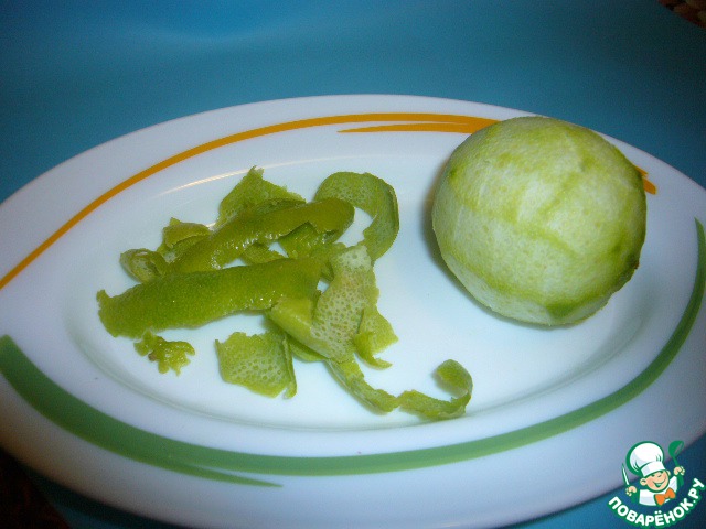 Лайм промыть. Ножом срезать цедру так, чтобы не снять белую горькую часть кожицы.