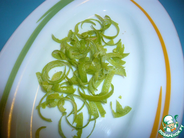 Нарезать цедру соломкой. Из лайма выдавить сок.