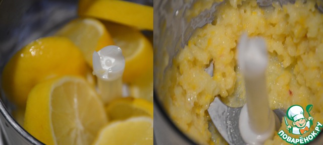 Лимоны нарезать дольками (кружками) и взбить в блендере