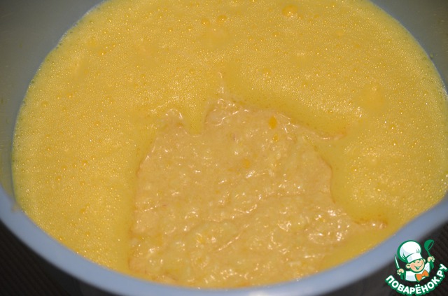 Яйца взбить отдельно, затем смешать их с лимонной массой.