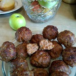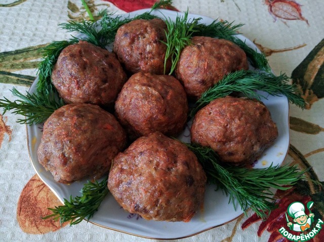 Сочные ароматные шарики пекутся в духовке на противне с водой. Получаются мягкие котлетки на пару и с легкой вкуснейшей корочкой. Продукты, входящие в состав шариков, самые обыкновенные. Но вот почему-то (для меня это до сих пор загадка: то ли из-за моркови, то ли еще по какой причине), когда они запекаются, стоит такой аромат, как будто готовится какое-то деликатесное блюдо. Этот рецепт моей мамы. Так вот, когда она их готовит, это уже понятно, когда подходишь к их квартире. И бежишь, бежишь скорее попробовать котлетки, и их вкус никогда не разочаровывает. Причем, готовить их можно из любого фарша. Конечно лучше из смешанного: говядина + свинина. Но я делаю из говяжьего фарша. Получаются очень сочные и вкусные котлетки!