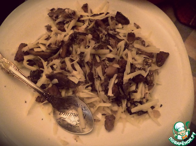 К уже готовым грибам добавьте натертого сыра. Можно добавить сметанки.