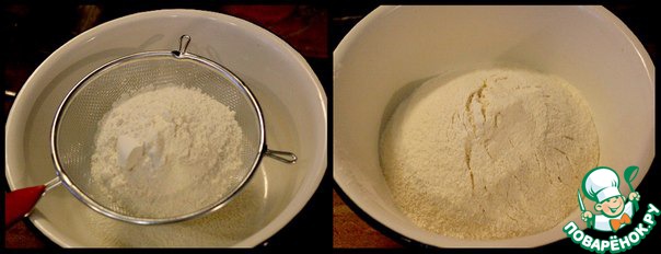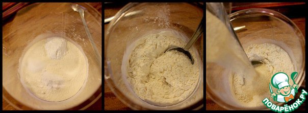 Берем муку, манную крупу Мистраль и смешиваем с содой, разрыхлителем и солью.