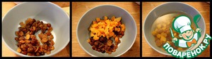 Изюм и курагу смешиваем и заливаем ненадолго теплой водичкой, чтобы сухофрукты набухли.