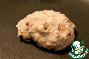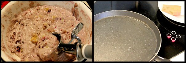Выкладываем небольшое количество теста на сковороду, накрываем крышкой и жарим на (чуть меньше среднего) огне до румяной корочки.
