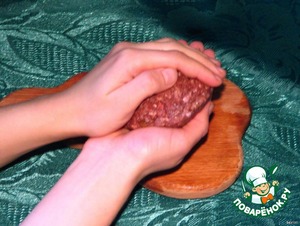 Накрыть всю конструкцию сверху ещё одним пластом из мяса и сформировать плотную котлету.