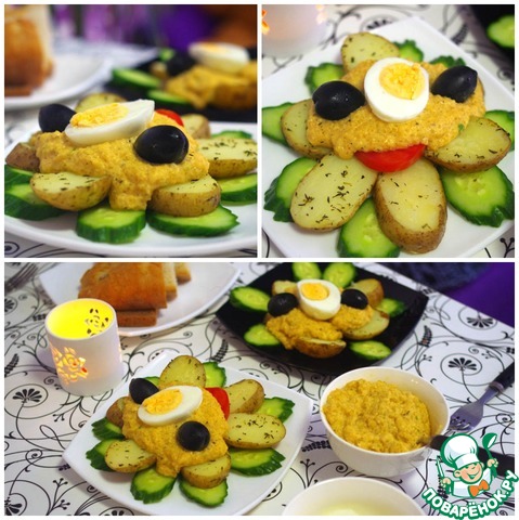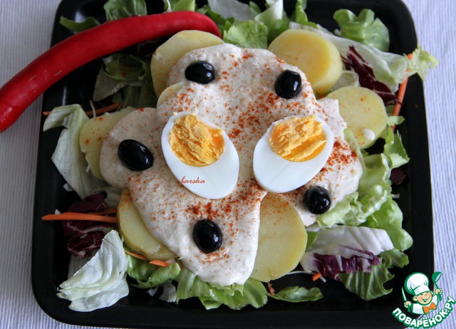 Увидела фото в Ленте и зашла посмотреть рецепт. И знаешь что я увидела, вот сразу бросилось в глаза? - это обезьянка, ты специально так сделала? два желтых кружка яйца - это глаза, кружочек оливки - нос, картошка нижняя - подбородок (или как он у обезьян называется), а соус на картошке выглядит как смеющиеся губы