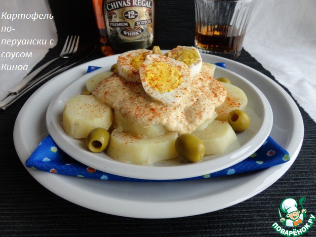 Это блюдо - вариация очень известного картофельного салата "Papa A La Huancaina". А проще говоря - отварной картофель под сливочным соусом. Киноа выступает в этом блюде источником протеинов, что еще более подчеркивает ценность и полезность этого злака, особенно для наших дорогих мужчин. Очень душевное, вкусное и сытное блюдо.