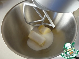 В миксер кладем 200 г масла и 180 г сахара. Взбиваем на средней скорости.