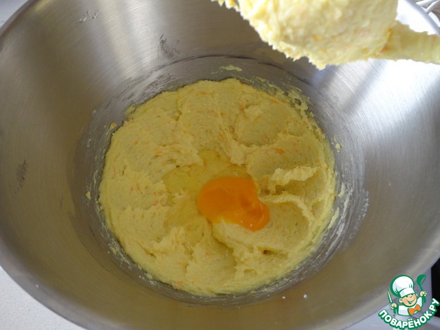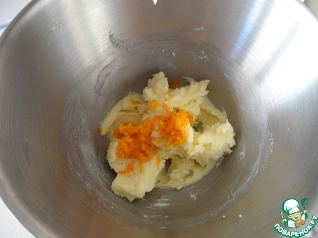 Добавляем цедру 1 апельсина, натертую на мелкой терке. Продолжаем взбивать.