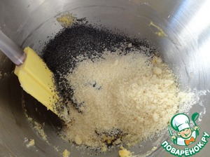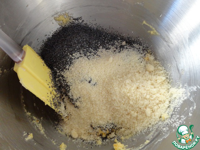Добавляем миндаль и мак. Перемешиваем лопаткой.