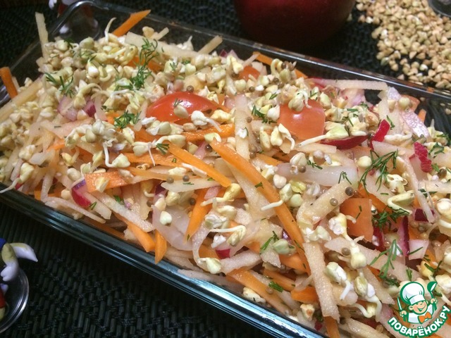 Рецепт «Салат с ростками зеленой гречки "Спортивный"»: