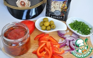Ингредиенты для «Теплый салат из киноа, палтуса и вяленых помидор»: