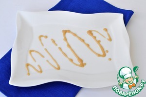 Нанесу соус на тарелку. В отдельной миске все смешаю, добавлю киноа. И буду выкладывать салат.