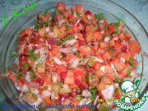 На фото видно время приготовления (без нарезки овощей), так это я дала остыть (на балконе) и добавила уже в остывший винегрет: лук + огурцы + квашеную капусту.