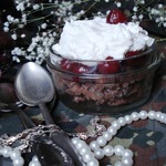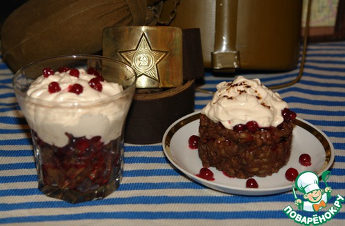 В креманку слоями выкладываем шоколадную кашу, клюкву (или другую ягоды), сверху выкладываем творожный крем. Украшаем ягодами или какао.