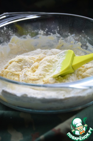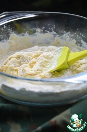 Приготовить тесто: смешать все ингредиенты, замесить мягкое, не липнущее к рукам тесто. Убрать его под пищевую плёнку на 20 мин.