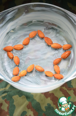 Форму смазать слив. маслом. Выложить оставшийся миндаль на дно.