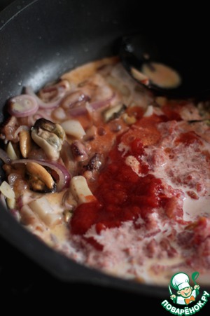 - Морепродукты (коктейль из морепродуктов) — 400 г