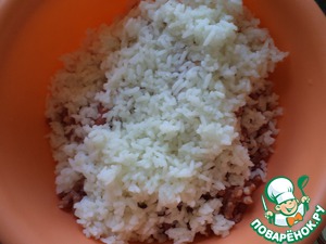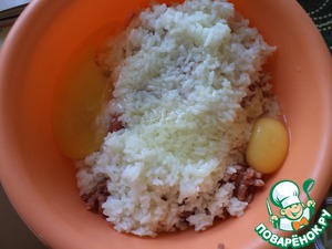 Для приготовления нам понадобится pис отварной, Фарш мясной, морковь, Лук репчатый, яйца, сухари, орехи, масло сливочное, растительное оливковое, соль, перец.
