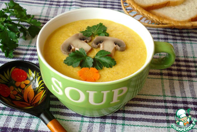 Рецепт «Cуп-пюре пшённый с грибами»:
