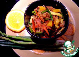 Так мне понравилась это блюдо, что не могу не поделиться. Вкус пшена не слышен, овощи и апельсин придают пикантность и ароматы. Витамины и полезность этого блюда восстановят силы и придадут заряд бодрости. То, что так важно, особенно весной.