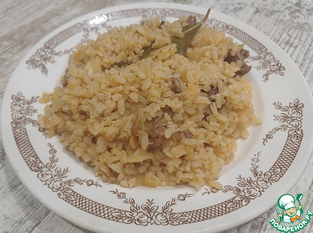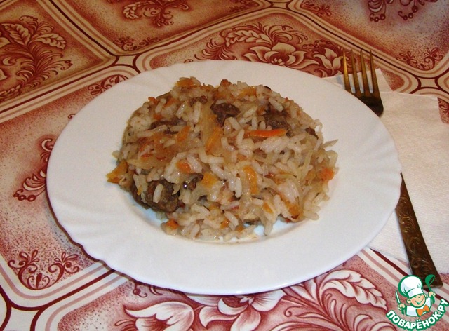 В данном случае для того, чтобы блюдо получилось аппетитным и вкусным, я предлагаю налить тёплой воды на 1 см выше риса.