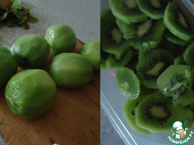 Очищаем, режем и замораживаем киви на ночь в морозилке.
