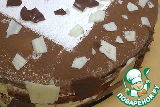 Этот тортик - мой первый опыт работы с мастикой. Но мне он понравился и без нее. Прекрасный шоколадный бисквит и сливочно-банановая начинка сделают его украшением праздничного стола.