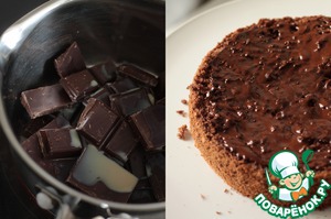 Пока крема охлаждаются, на водяной бане растопим темный шоколад, я добавила бейлис, но если готовите для деток, алкоголь, конечно, добавлять не стоит.