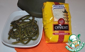 Папоротник предварительно вымочила, рис поставила варить. Для этого рецепта использовала рис "Ориент".