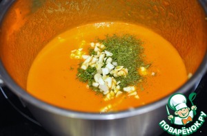 Уварю в сотейнике на 1/4, добавлю сельдерей сушеный и чеснок. Перемешаю, и соус готов.