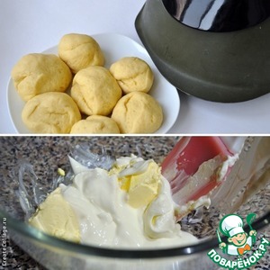 Мягкое масло посолить, добавить сметаны, муки, разрыхлителя и завести мягкое тесто. Тесто разделить на шарики, сколько шариков, столько и пицц получится. Поставить в холод на 30 минут.