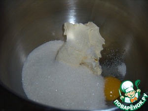 Разотрите мягкое сливочное масло с сахаром и желтком.