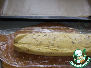 Сформировать брусок, завернуть в пищевую пленку и отправить в холод (я положила в морозилку) на 30 минут.