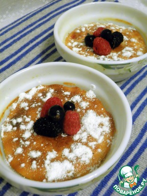 Первый десерт достаем из духовки, даем ему остыть и украшаем сахарной пудрой и ягодами.