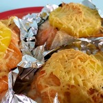 Берем фольгу, такой кусочек, чтобы можно было завернуть один из 4 кусков рыбы. Немного майонеза, сверху 4 ломтика отварной картошки.