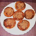 Форму поставить в разогретую духовку при 180 градусов на 25 - 30 минут. Вынимать лучше остывшие, чтобы запеканка не развалилась. Получились маленькие запеканочки с хрустящим верхом из кунжутных семечек... На запеканку обильно положила густой сметаны.